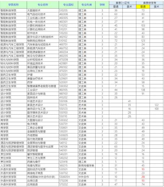 顺德职业技术学院2023年广东省春季招生专业目录公布计划一览表